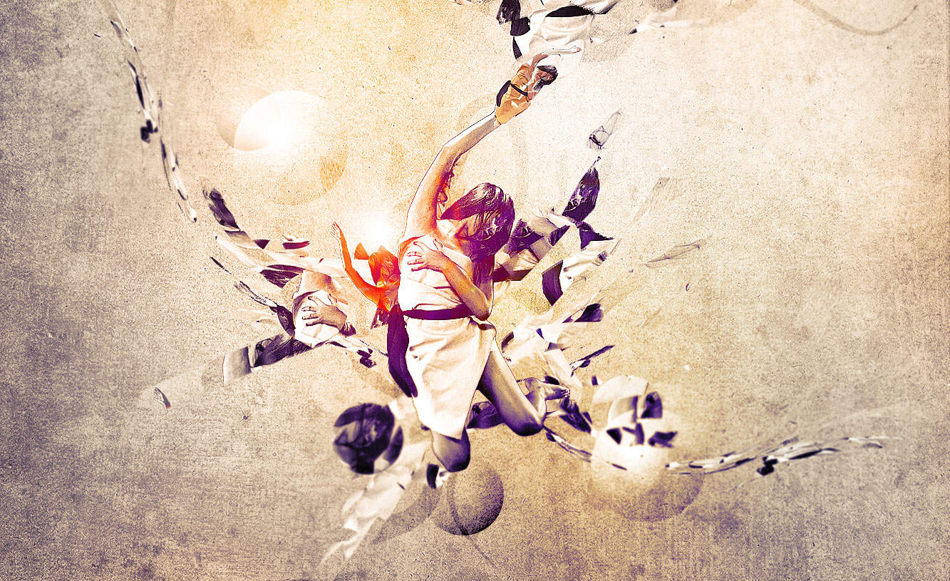 Once you’re done, duplicate this layer and warp it to create some flying motion to the image: