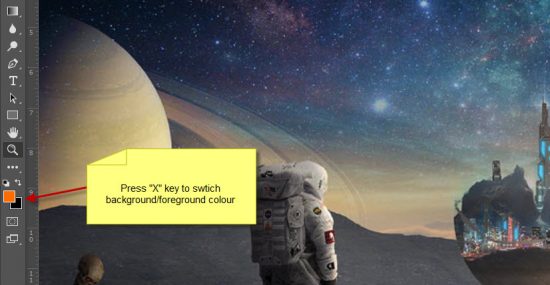 You would find that quite often you need to switch background/foreground colour. A faster way to do this is to press the “X” key – this is much quicker then using the colour picker:
