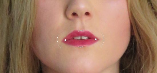 Once the Face Tool is enabled, move your mouse over any one facial feature (eyes, nose, etc.) – you will see a smart guide appearing. This allows you to Click & Drag and adjust the relevant facial feature: