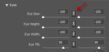 Notice the paper clip icon under the Eyes settings? Click on it and it will automatically apply equal value to the left/right eye setting: