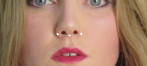 Once the Face Tool is enabled, move your mouse over any one facial feature (eyes, nose, etc.) – you will see a smart guide appearing. This allows you to Click & Drag and adjust the relevant facial feature:
