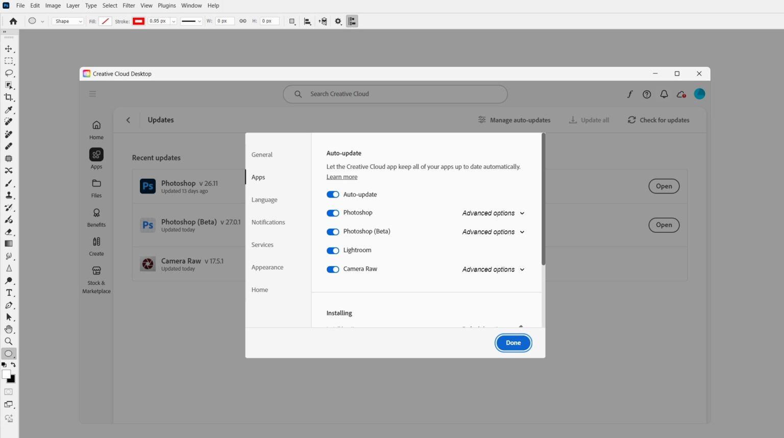 The simplest way to catch every Photoshop 2025 update is via the Creative Cloud app. Open it, click the profile icon (top right), and go to Preferences > Apps. Select “Update All Apps Automatically” to let updates install in the background. This keeps you current without manual checks.