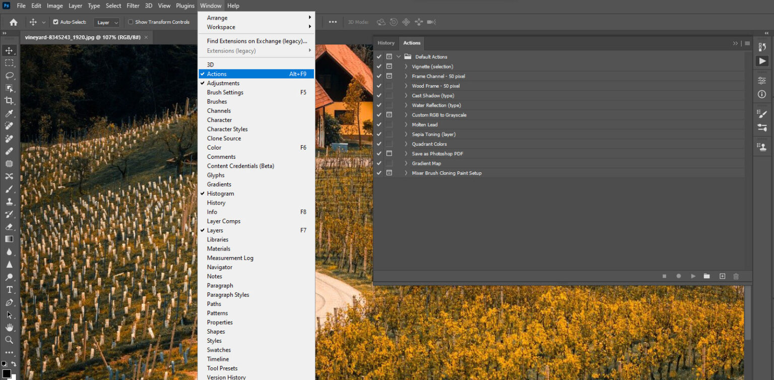 Begin by launching Adobe Photoshop and navigating to the “Window” menu. Select “Actions” to open the Actions panel, which will serve as your central hub for managing and creating actions.