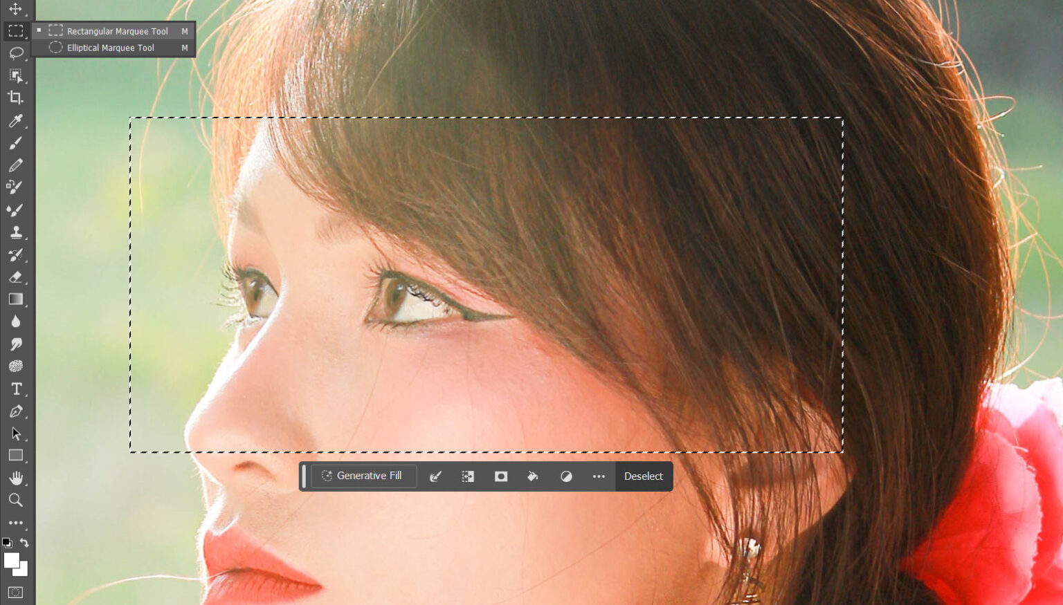 – Rectangular Marquee Tool (M): Click and drag to create a rectangular selection.