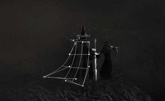 Select the wizard’s robe the use the Warp Tool to warp it slightly, so it looks like the wind is blowing it to the left: