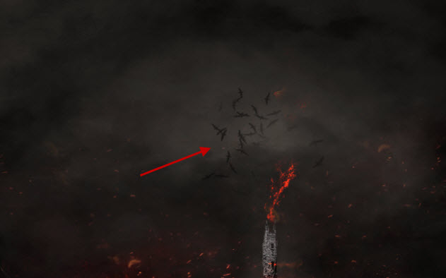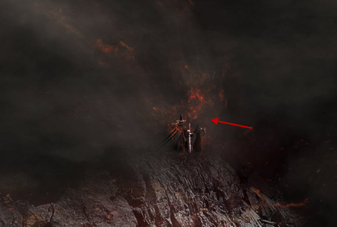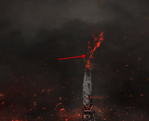 Repeat the process above, add more fire to the following areas as shown below, make sure you adjust and vary the size of the fire accordingly: