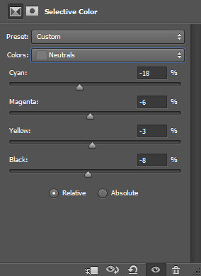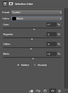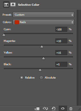 We’re almost done! For the final touches, I applied the following Selective Color adjustment layer on top of all previous layers to add some colours to our image: