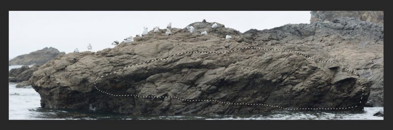 Create a new document sized 1440px * 780px with black background. Load the rock stock image into Photoshop, select the following portion with the Lasso Tool: