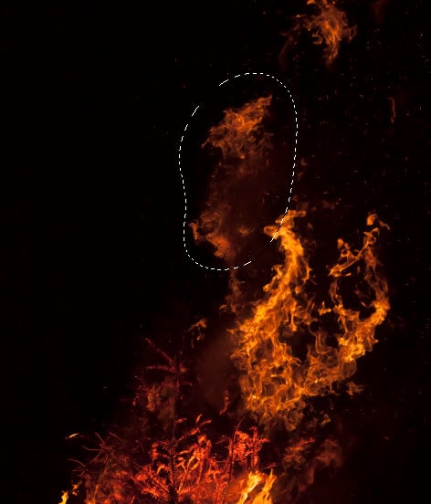 We will use the fire stock image to create a dark energy releasing scene. Load the fire stock image into Photoshop and select the following portion: