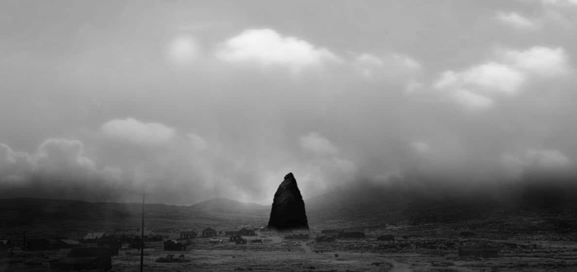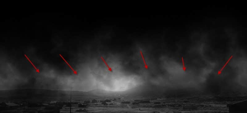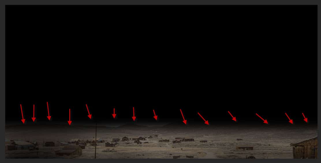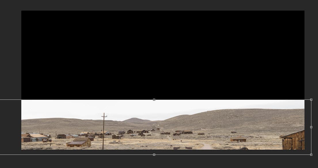 Create a new document sized 1440px * 709px with black background. Load the desert stock image into Photoshop, place it at the bottom of the canvas as shown below:
