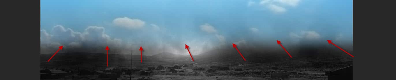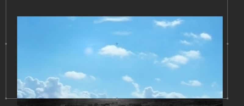 Load the sky image into Photoshop, and place it on top of the desert as shown below: