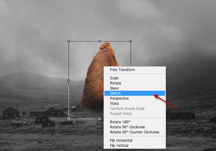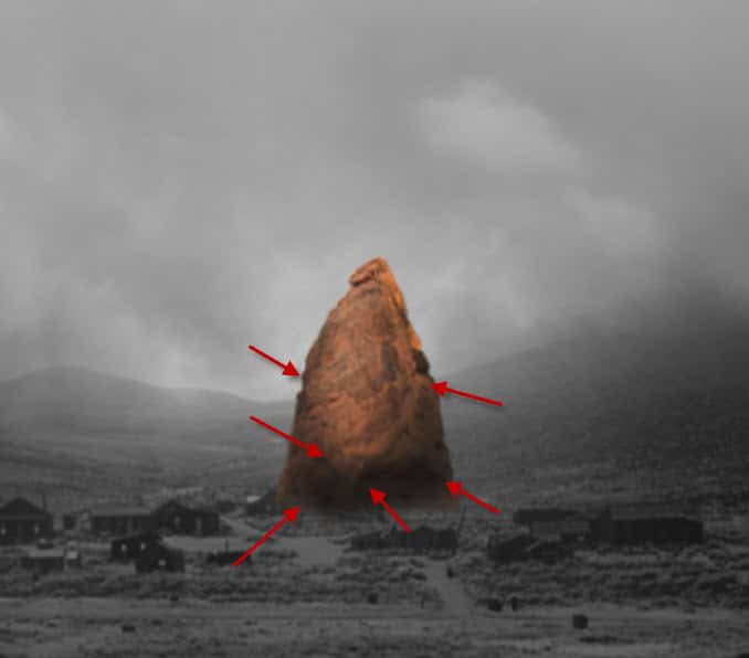 Place the selection at the centre, distort the rock layer slightly to make it into the following triangle shape: