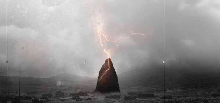 Copy and paste the selection to our document, resize and attach it to the rock. Set the layer blend mode to “Screen”: