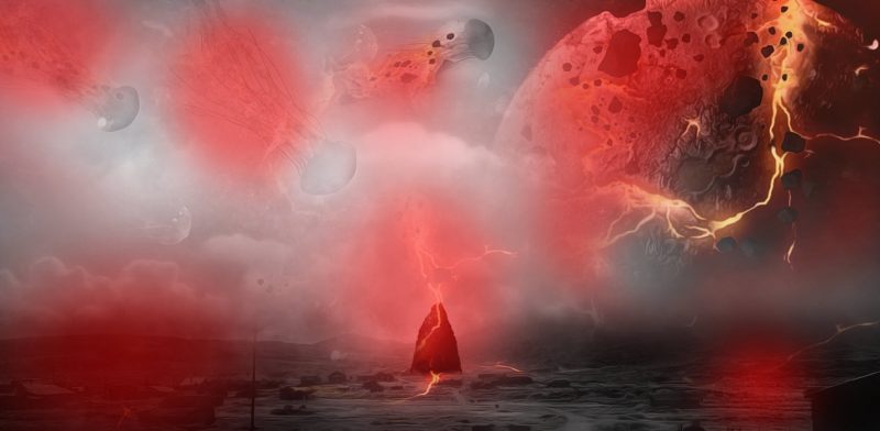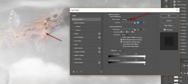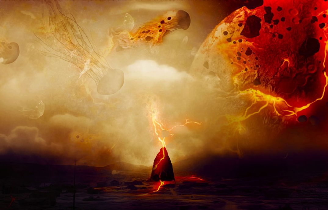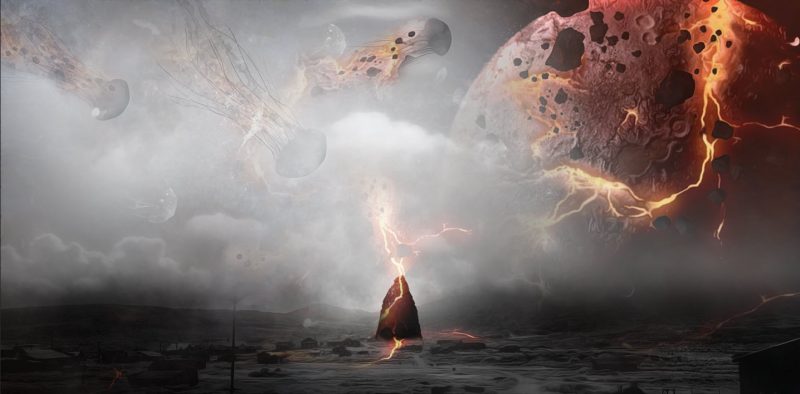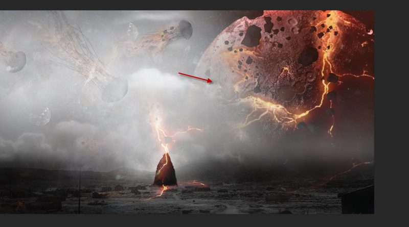 Add the rock and lava texture to the Jellyfish, set the layer blend mode to “Overlay”: