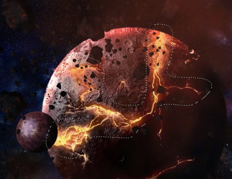 Load the planet stock image into Photoshop, select the lava portion from the stock: