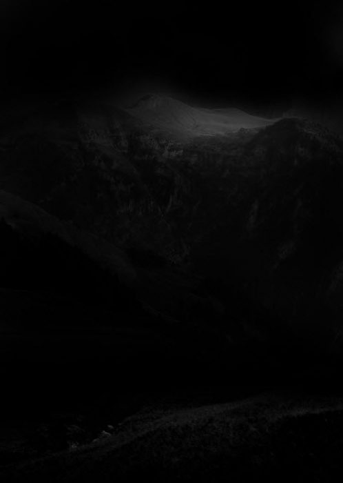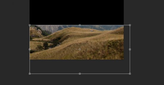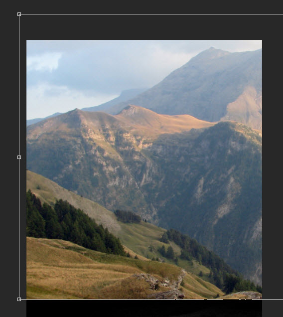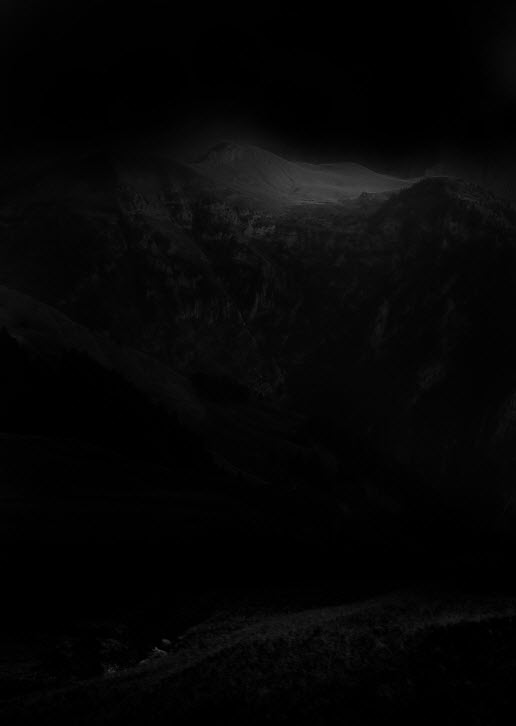 Create a new document sized 780px in width and 1100px in height, with black background. Load the Mountain stock image into Photoshop, select the following portion: