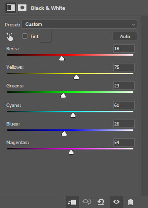 Apply the following image adjustment layers as clipping masks to this mountain layer: