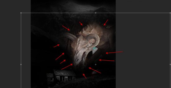 Load the dragon stock image into Photoshop, select the dragon and paste it to the following position. Use a soft eraser to remove the edges of the dragon so it blends with the rest of the objects: