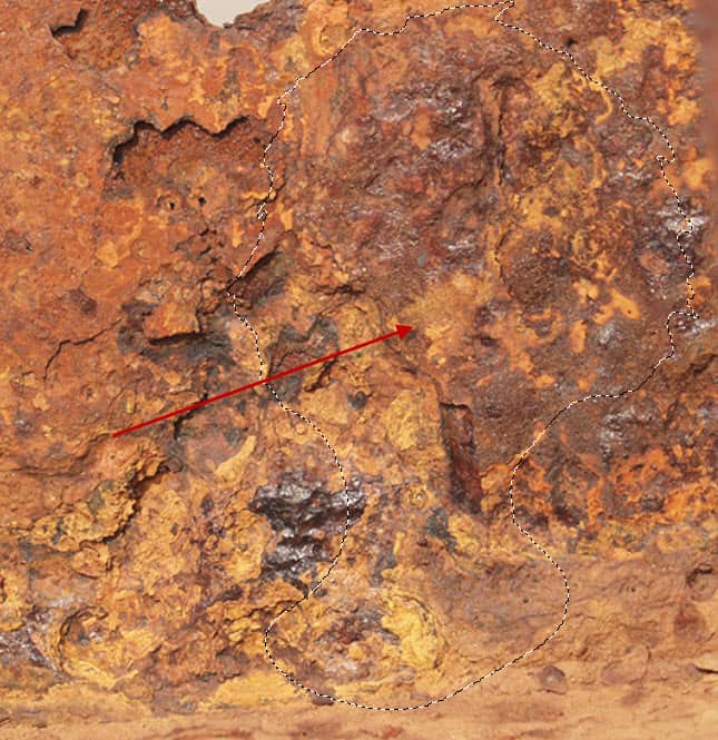 We will now apply the rusted metal texture onto the face. Open up the texture image in Photoshop, load the selection of the model layer and drag it over onto the texture image: