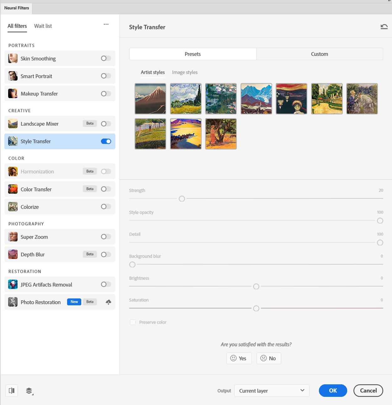 - Combine Filters: Pair Style Transfer with Neural Filters like Depth Blur for dreamy effects.