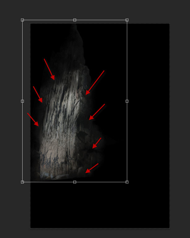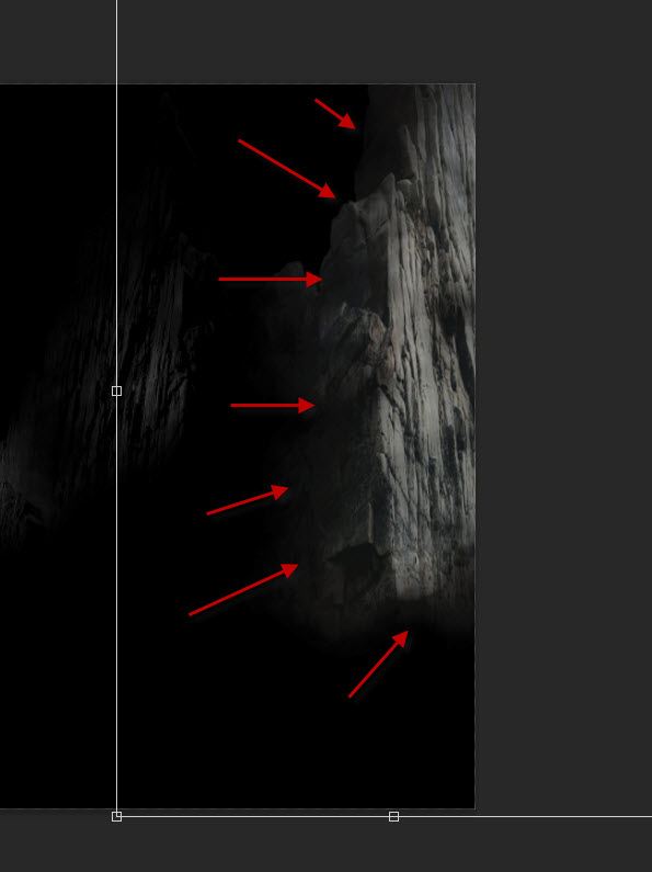 We will add another piece of rock formation on the right side. Select another part of the rock formation stock image and place it on the following area: