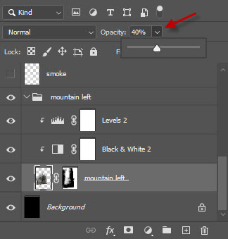 Reduce the layer opacity of the rock layer to around 40%: