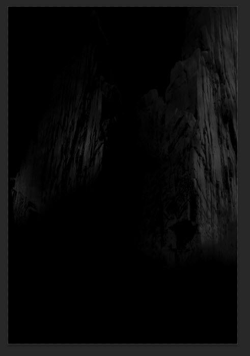 Create a new document sized 820px * 1200px with black background. Load the rock formation stock image into Photoshop, select the top area and paste it onto our document, place it at the following location: