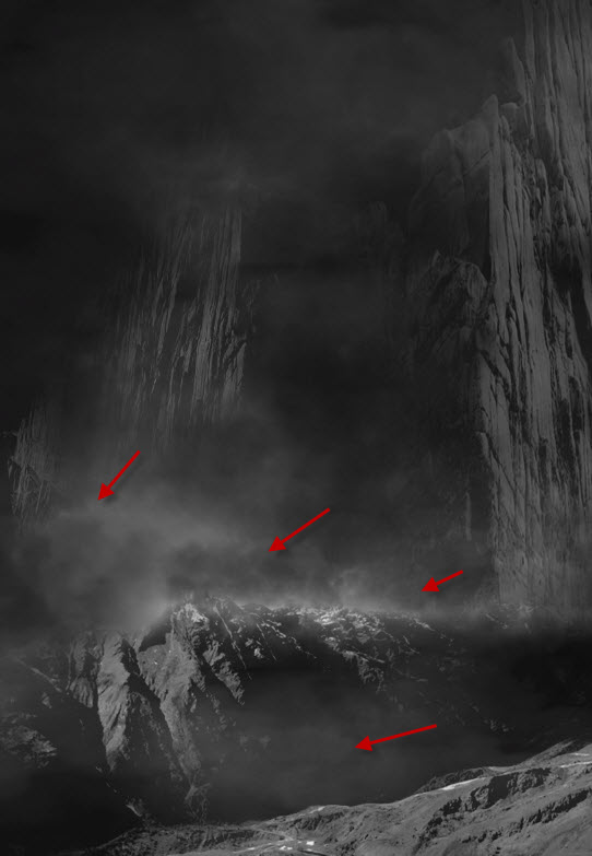Apply the following image adjustment layers as clipping masks to the rock layer: