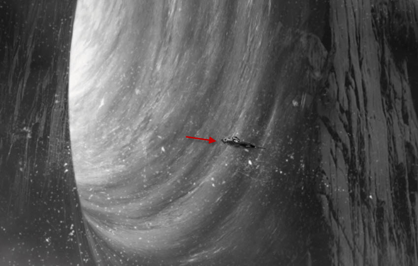 Load the spaceship stock image into Photoshop, select the ship and place it on the rock surface as shown below: