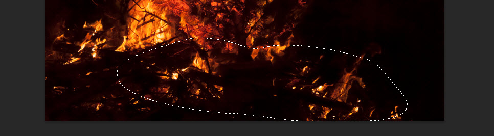 Load the fire stock image into Photoshop and select following area: