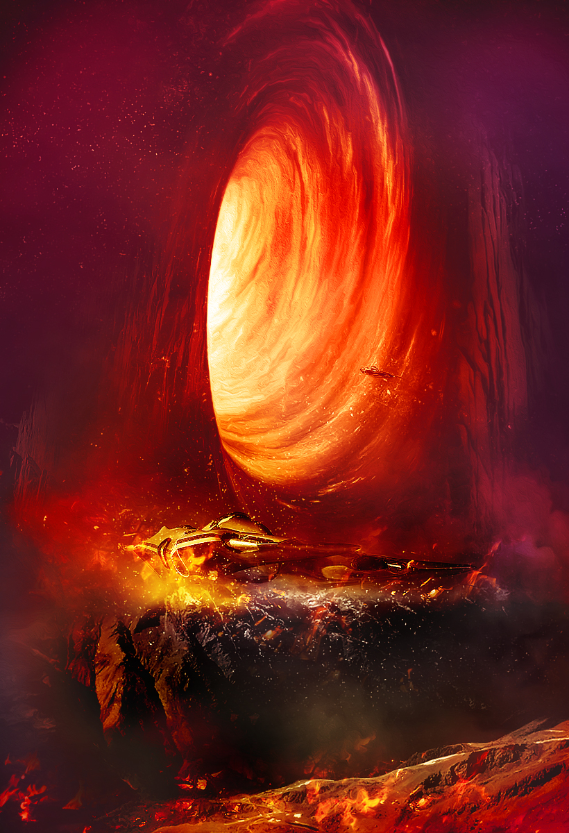 The concept is to design a surreal environment which consists a worm hole, a few spaceships and a planet rock surface. Some fire elements were also added to make the condition more hostile.