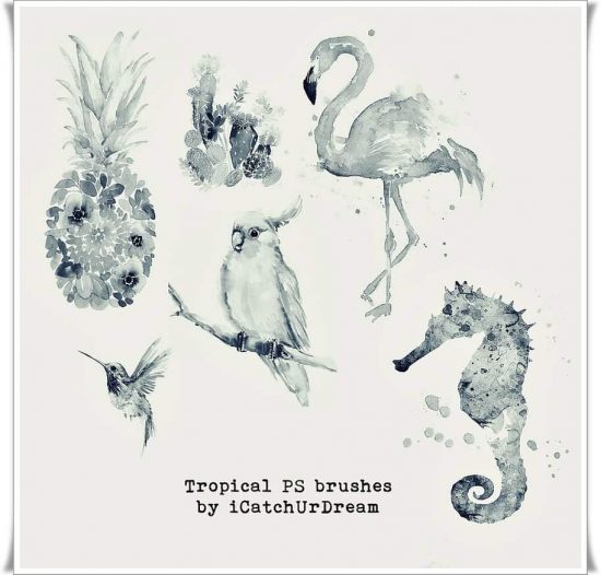 This is a great set of watercolor brushes containing tropical fruits & animals:
