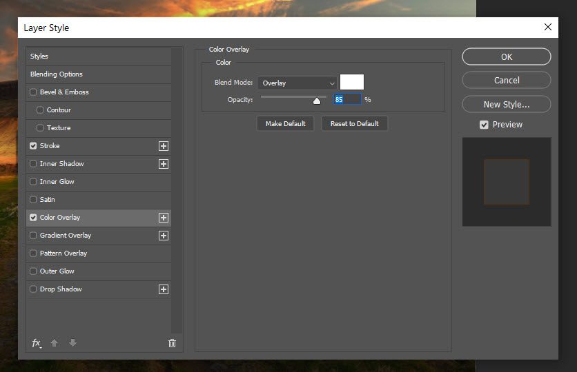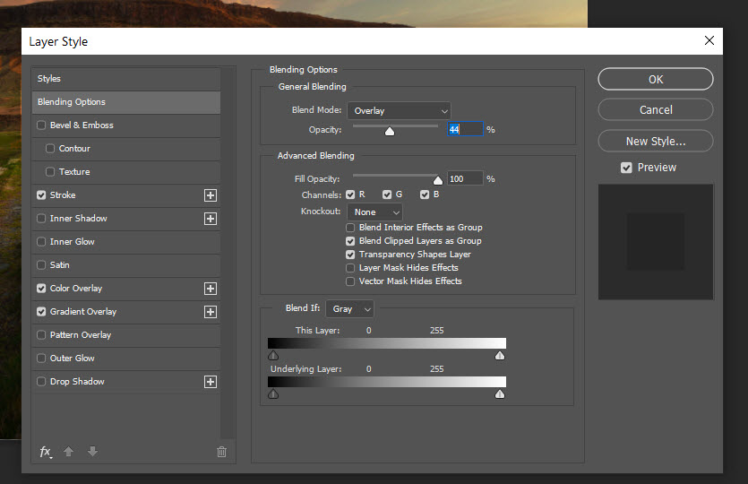 Change the layer blend mode to “overlay” and opacity to around 40% for this duplicated layer: