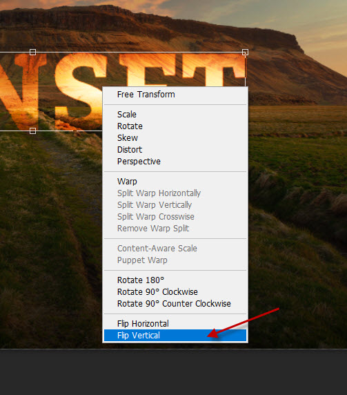 We will make some shadow for the text. Duplicate this text layer once, remove all layer blend options. Press Ctrl + T to bring up the free transform tool, right-click and choose “Flip Vertical”: